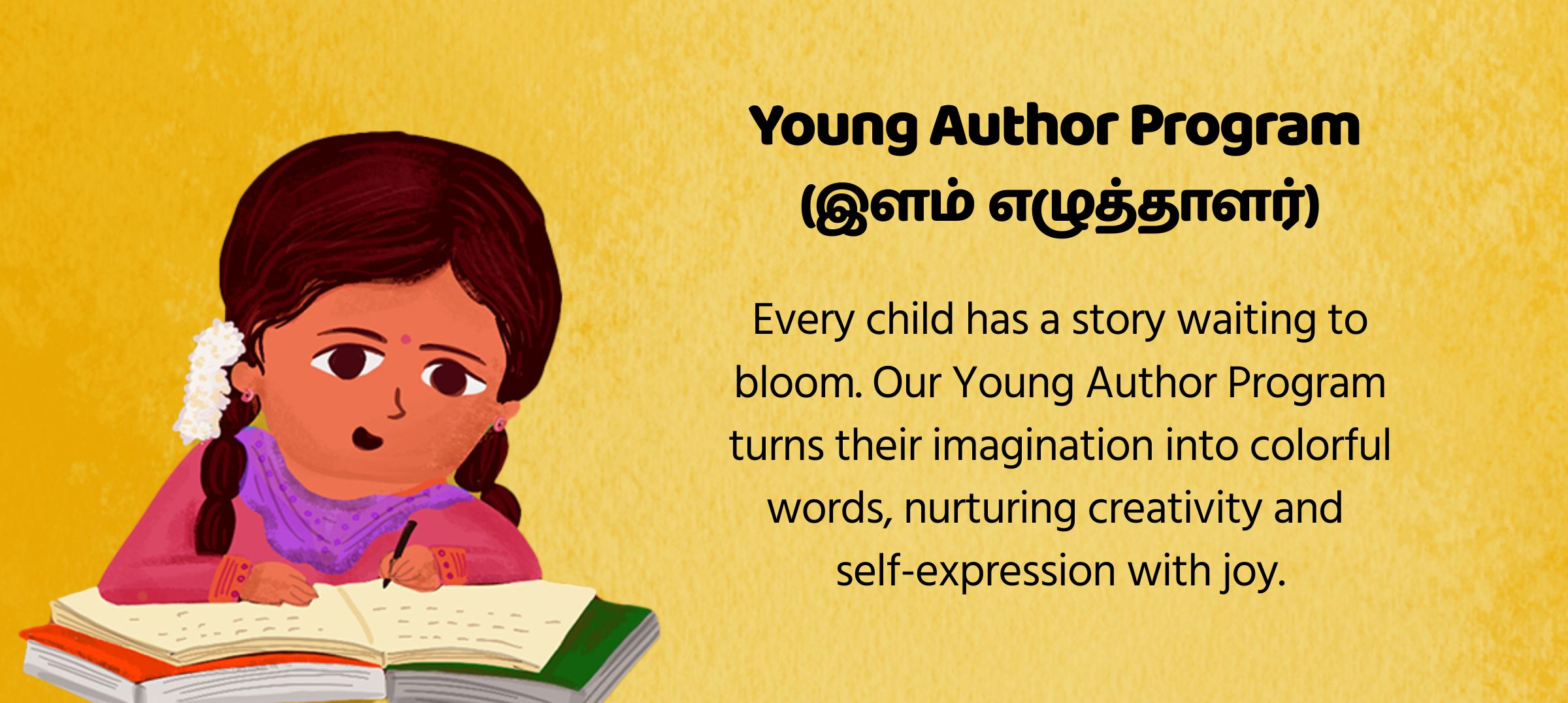 This program offers a unique opportunity for children to turn their ideas into published books, allowing them to become young authors. By contributing to a growing body of Tamil literature, they play a vital role in preserving the richness of the Tamil language and culture. Beyond publishing, the program nurtures creativity, enhances storytelling skills, and builds confidence, helping young writers express themselves with clarity and imagination. With expert guidance from experienced mentors, they receive invaluable support to refine their writing, strengthen their narrative, and elevate their storytelling to the next level.